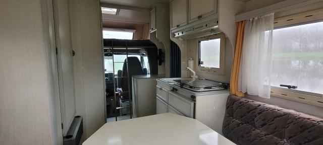 Nette, goed onderhouden Frankia camper op basis van Fiat Ducato 2.5D met ruime rondzit tweepersoons bed in alkoof.