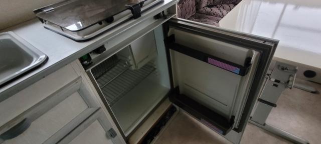 * keukenblok met tweepits gasstel en ruime Dometic koelkast incl. vriesvak