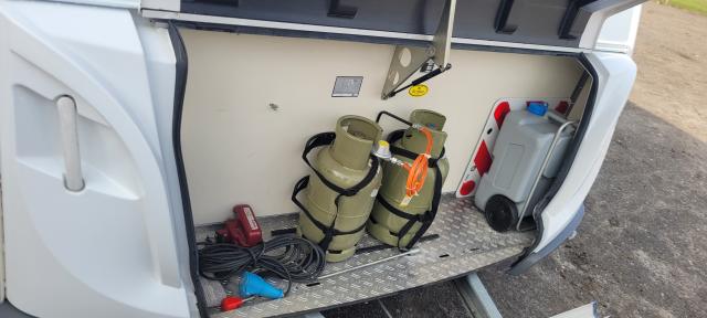 Laadvermogen 310 kg. Inclusief alle originele documentatie en onderhoudsboekjes, gasflessen, euro-verlengsnoer en andere accessoires