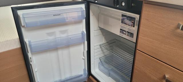 - groot keukenblok met driepits Dometic gasstel, spoelbak en ruime ladenkast